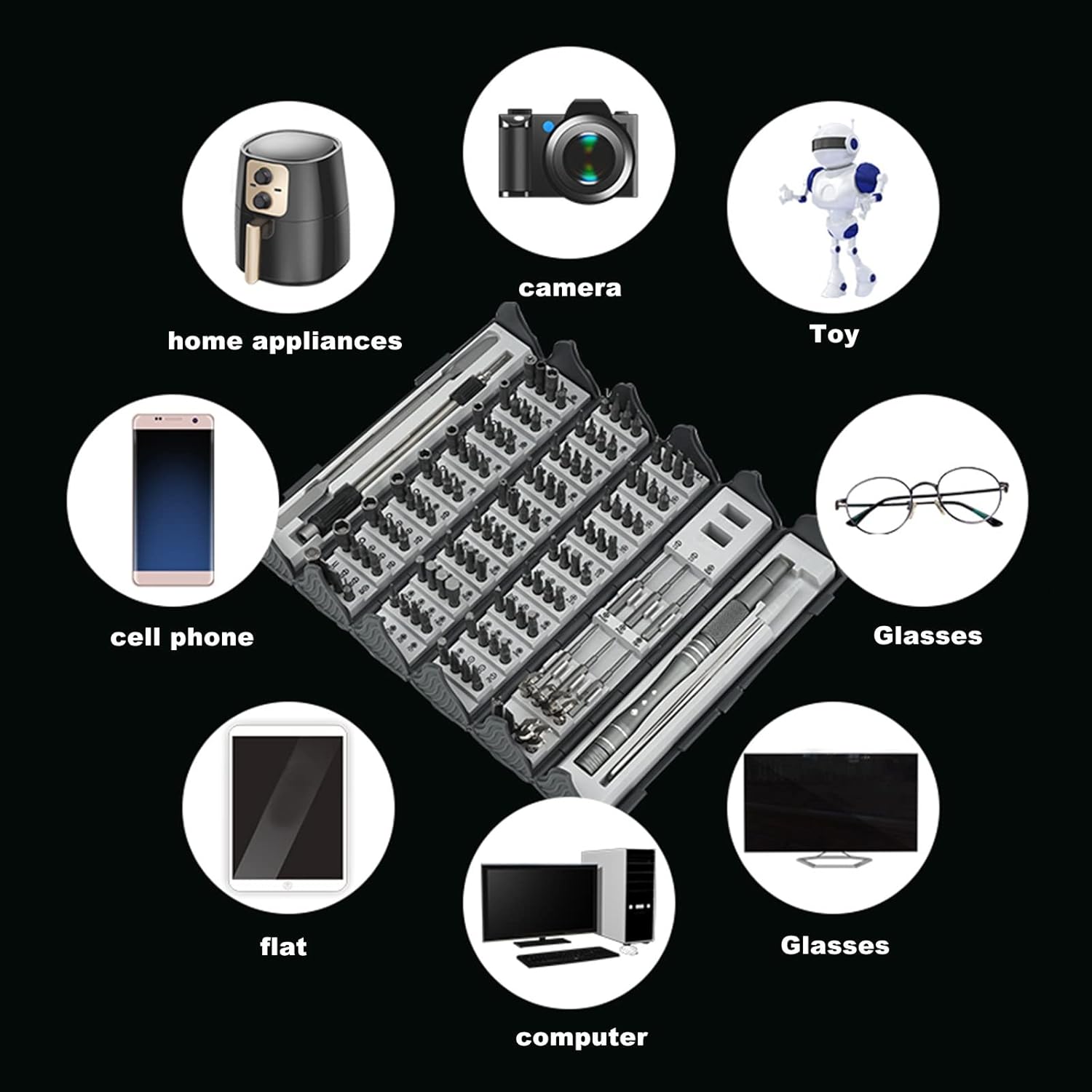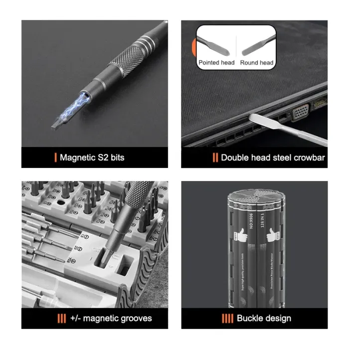 Seti ya bisibisi ya aina 128 ndani ya 1 ni kifaa cha kitaalamu chenye vipande vingi vya kazi mbalimbali, bora kwa mafundi, wapenda DIY, na matumizi ya kila siku nyumbani. Kutoka kwa vifaa vya kielektroniki kama simu na kompyuta hadi saa, kamera na vifaa vidogo vya nyumbani — hii ndiyo suluhisho lako la kila kitu. 🔧📱💻